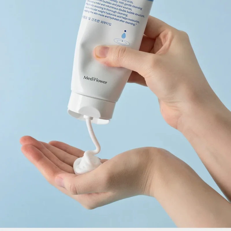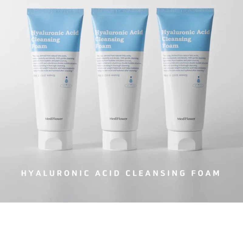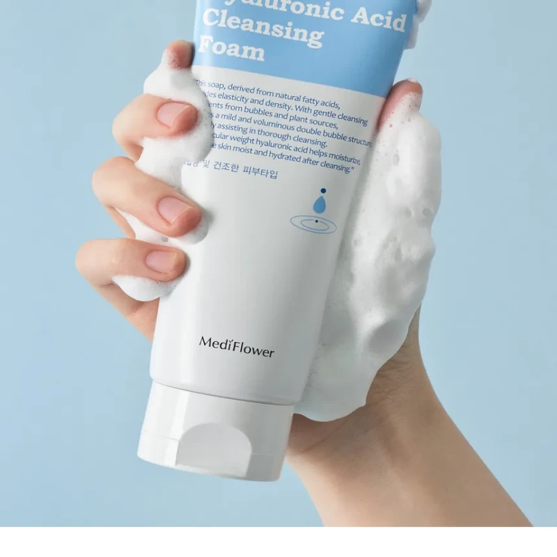 MediFlower Hyaluronic Acid Cleansing Foam (150ml) is a moisturizing, deep-cleansing foam designed to remove impurities and sebum while keeping skin hydrated, making it suitable for all skin types, especially dry and sensitive skin.