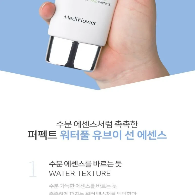 Choosing MediFlower Perfect Waterful UV Sun Essence means superior sun protection that cares for your skin. Unlike heavy sunscreens, this essence is lightweight and absorbs quickly, perfect for daily use. It offers effective sun protection while boosting your skin's hydration, leaving it soft and smooth.